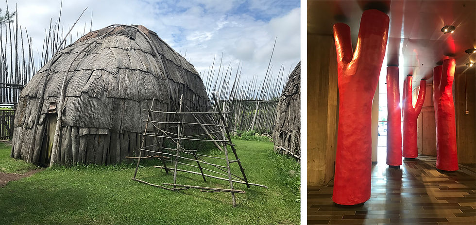 - Une fois bien arrivés à Montréal, le séjour commence ! On est accueilli chez Isa & family. Damien nous emmène découvrir les maisons longues iroquoïennes de Droullers, un bon moyen d’en connaître un peu plus sur la culture des Premières Nations.